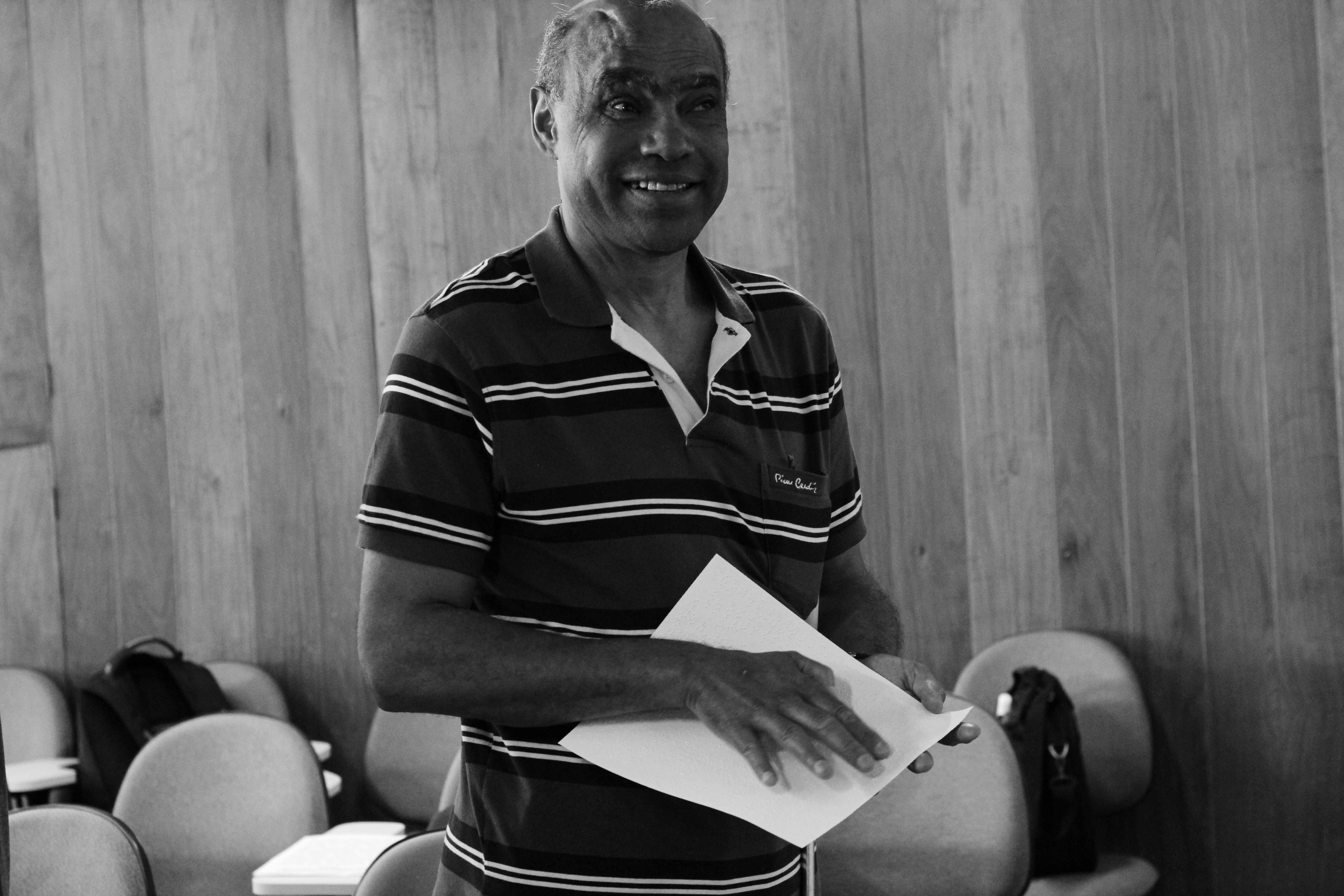 “Perdi a vista aos 25 anos depois de um acidente de carro. Trabalho aqui na Biblioteca Pública há 17 anos. Atualmente sou monitor do curso de braile para pessoas que não são cegas, estamos na 11ª turma”, conta Anastacio Braga